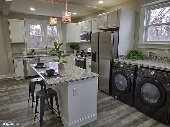 Come see this completely renovated detached home because this one has it all!! Everything on 2 finished levels is brand new! Great home owner neighborhood with long term friendly neighbors. This home features a large new front porch with weather resistant Trex decking boards as well as a good sized front and back yards with plenty of room for BBQs and get togethers! It has a new asphalt driveway that can easily accommodate 3 or more cars. New vinyl siding on the entire exterior of the house, new windows, new central air conditioning, new high efficiency gas furnace, new stainless steel appliances, new energy efficient front loading washer and dryer, new granite countertops, new recessed lights on the first floor, and new modern light fixtures throughout the rest of the house, 2 large bedrooms on the first floor including 1 with a walk in closet, and 2 more bedrooms on the newly finished 2nd floor, new his and her bathroom vanities in the 2nd floor bathroom, with another full bathroom on the first floor, new modern design faucets, and new tub / shower diverters, luxury ceramic tile in both full bathrooms, carpet for comfort on the 2nd level as well as in the 2 bedrooms on the first floor, and new waterproof luxury vinyl tile on the fist floor, brand new gas furnace and new water heater, all new electrical wiring, new electrical panel box, and new electrical service to the house, as well as all new plumbing, and a new water service was run from the sidewalk to the house. It also has a large, clean, and very well lit basement for all your storage needs as well as a good sized shed in the back yard for all of your outdoor gardening tools and equipment that also has new vinyl siding and a new roof on it! All you have to do is move your things right in to make this wonderfully renovated home your new home!