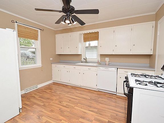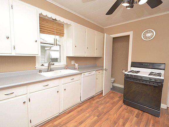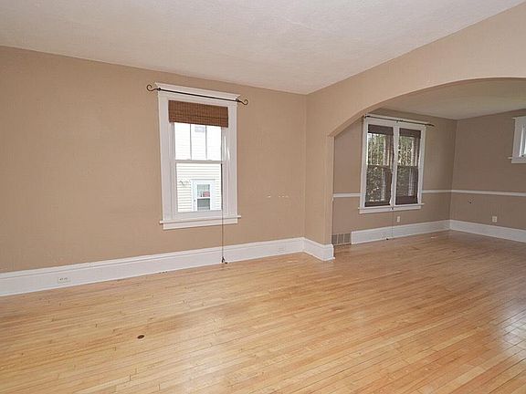 Quaint 2 bedroom bungalow with front porch and pretty maple hardwood floors in the living room & dining room. Lots of character/original woodwork. Beds offer walk in closets! Light & bright kitchen has pantry with white cabinets that matches white trim throughout the house. Many newer window with a newer washer.There is ample storage throughout the home.