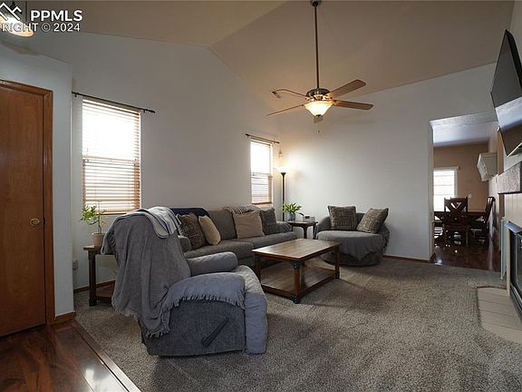 Enjoy main level living of this 3 bedroom, 2 bathroom, 2-car attached garage Ranch style home! As you step inside the front door you will be greeted by the natural lighting flowing in from the abundance of large windows throughout the home. A spacious Living Room features a gas fireplace and vaulted ceilings, ideal for everyday living and hosting family and friends. The walk-out Kitchen is complete with gorgeous wood flooring and an abundance of cabinetry for storage. A Refrigerator, Range, Microwave, and Dishwasher are all included. Continuing on you will find a full bathroom separate from the private Primary Bathroom! The Primary Bedroom offers luxuries such as an attached, private Full Bathroom featuring a double vanity sink and a walk-in closet! Two additional rooms can be found in the home which can be utilized as bedrooms, designated as space for workout room, home office, or host hobbies and more! The comforts of this home continue outside where you will find a large private backyard to enjoy the great outdoors. A storage shed for extra equipment. The home’s location is convenient to many amenities such as parks, restaurants, shopping centers, Peterson and Schriever Bases and just minutes from Colorado Springs Airport!