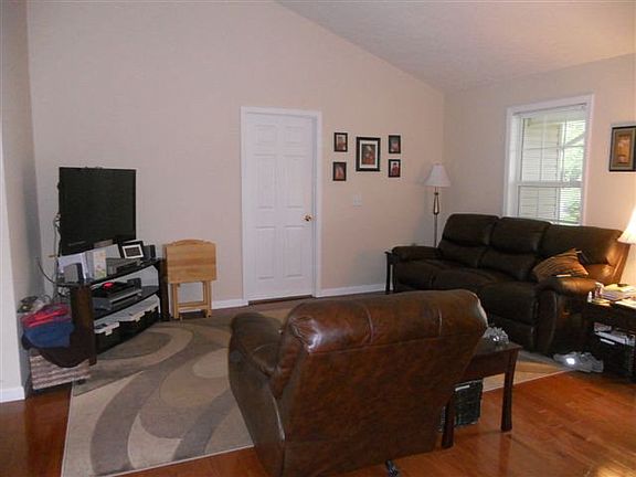 Unfortunate sudden job loss. Need to sell quickly! Hard to find affordable one level with full basement on wooded oversized lot. Main level features family room with hardwoods and vaulted ceiling open to dining room with hardwoods. Galley kitchen that joins spacious laundry room with pantry. Split bedroom plan. Roomy master with walk-in closet. Full basement for lots of storage and workshop area. Could be finished easily. Outbuilding that cost $3,800 plus custom tree house for the kiddos. Covered front porch for swinging, open deck for grilling, paved drive, concrete walk.