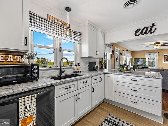 Welcome to 7020 Calhoun Road, a beautifully renovated ranch-style home nestled on a generous .57-acre lot in Milford, DE. This 3-bedroom, 1.5 bath home exudes a classic and timeless appeal. The gourmet kitchen steals the spotlight with its modern updates. Adorned with sleek granite countertops and a classic subway tile backsplash, the kitchen is highlighted by luxury plank flooring and a suite of black Frigidaire appliances that bring a contemporary touch to the space. The breakfast bar is ideal for casual dining or entertaining guests. An adjacent dining area features clean lines with white vertical paneling, crown molding and a stylish five-light chandelier. You will find classic hardwood floors, crisp white trim, a high arched doorway, and a handsome color palette in this meticulously maintained home. Both the full and powder bath have been updated with modern cabinetry, Outside, entertain guests on the back deck and gather around the firepit for memorable evenings. A wrap around driveway leads to a 2-car garage with an interior access to an unfinished basement area providing ample storage for your belongings. Enjoy the country-like setting while being just a short drive from all the modern conveniences you need, including popular establishments such as Redner’s, Aldi, Starbucks, and Arena’s Milford just to name a few. There are no HOA fees! Do not wait, schedule your appointment today!