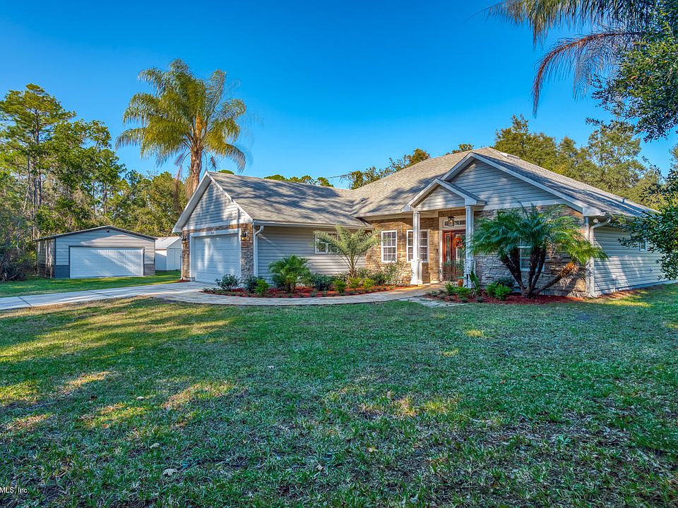 If your tired of HOA rules this property is perfect for you. Situated on approx. 1.6 acres with a move in ready 3 bed, 2 bath custom built home. As you arrive the stone accents, walkway, and gorgeous front door set the tone for what's inside. The tiled foyer has a granite inlay and opens to the living and formal dining rooms. Spacious kitchen boasts high quality custom cabinets, granite countertops at a height of 40 inches, 42 inch upper cabinets, tiled backsplash, upgraded Samsung fridge, dishwasher, double ovens, glass cooktop, breakfast bar and nook. The living area has wood flooring and the cathedral ceilings draw your eyes up to the ledge where you can accent your favorite pieces with perfectly placed recess lighting. The formal dining room is a great size for gatherings.