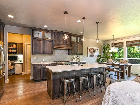 Beautiful foothill views from this remarkable home in highly coveted East Valley Subdivision. Ideally located between the foothills & Boise River! Timeless, sophisticated open-concept design is perfect for entertaining. Elevated ceilings compliment the gourmet kitchen w/ quartz counters & oversized island. Stunning Master has a private hallway leading to an indulgent bathroom suite w/ his & her vanities, dual head shower & huge walk in closet. Convenient home office space & ample storage throughout! Tucked away on the main level sits a second master w/private ensuite. The covered patio provides Boise foothill views & enjoyable shaded evenings. This location offers you the best of nature & adventure w/ direct access to miles of Highland Park Trail, Boise Greenbelt & close proximity to Lucky Peak, Shakespeare Festival, Micron & Riverstone International School. Easy jaunt to neighboring Lucky 13 Pizza, Lost Shack Sushi, Bown's Crossing, BSU & the heart of Downtown Boise!