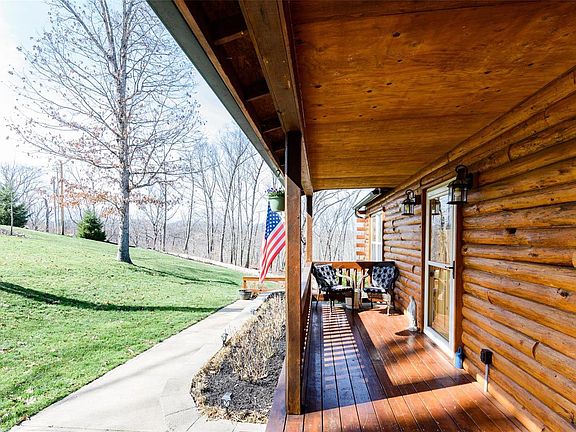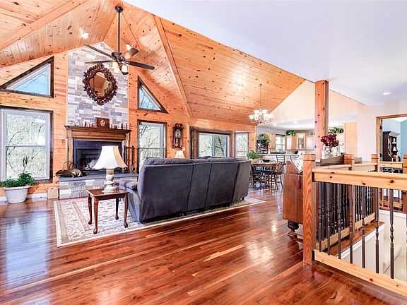 Welcome to your dream home, nestled on a picturesque 6-acre lot in a peaceful community. This stunning log sided home offers the perfect balance of rustic charm and modern amenities, with 4 spacious bedrooms and 2.5 beautifully appointed baths. The inviting front porch welcomes you into the great room, complete with a soaring vaulted wood paneled ceiling, cozy wood-burning fireplace and walk out deck. The adjacent kitchen features stainless steel appliances, dual ovens, custom cabinetry, and ample counter space for meal prep. Retreat to the master suite with its own private bath that boasts a soaking tub, separate shower, and walk in closet. The 3 additional bedrooms and loft provide plenty of space for family and guests. The lower level provides access to the attached 3 car garage, more finished space with a walk out to the patio, and a half bath with plumbing for a shower. An ideal blend of nature and modern convenience - make it yours! Showings begin 3/31