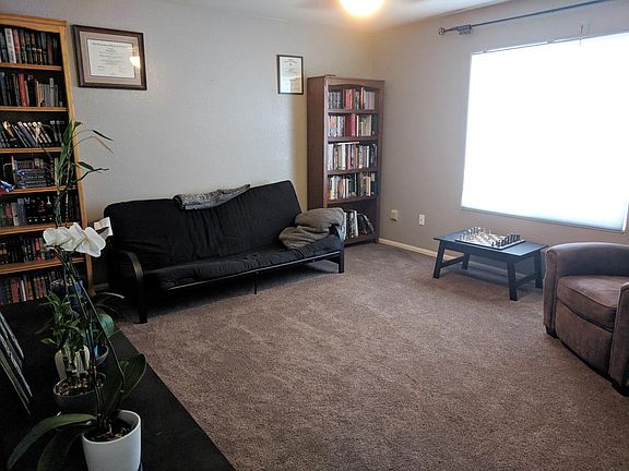 Great rental home in convenient location. 4 bedrooms, 2.5 baths, 2 car attached garage. 3 separate living spaces (living room, family room, den/rec room). Fireplace. Large walk-in closet and pantry. Central air conditioning. Washer and dryer provided. Will be professionally cleaned and ready to move in. No room mate situations please as this is zoned a single family residence. Tenant responsible for all utilities and lawn care. 1 medium dog allowed with approval and pet deposit.