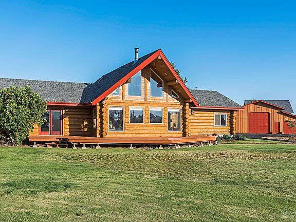Back on market; no fault of the sellers. Price Reduced! Gorgeous custom Swedish Cope hand scribed log home on 5 acres w/ a pond for irrigation and incredible views. This property would make a wonderful equestrian facility. This immaculate home is 2219sf with 3br/2.5ba and a large loft. Insulated 48x48 shop w/pellet stove and high ceilings. 2.48 acres of irrigation for hay. Paved circular driveway and additional outbuilding for firewood storage. 4 bay machinery parking undercover at side of shop.