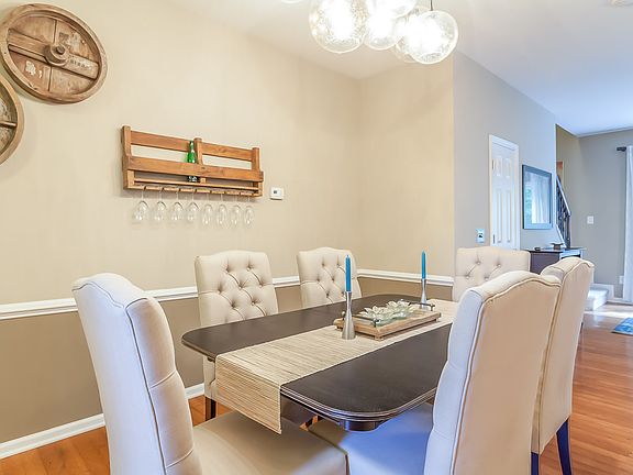 Terrific location & fabulous light in this End Unit Townhome with 2 sets of sliding glass doors straight back from the entrance. 3 Bedroom 2 & half Baths & 1 car Garage with open floor plan & private wooded back yard. Attractive partial brick front & grassy side yard. Improvements-new paver pad at back & Nest thermostat '17, new engineered hardwoods 1st floor, carpet 2nd floor, steel front door with side light & garage shelving '18, disposal '20. Well cared for and ready for you! OFFER DEADLINE FRI 6PM 7/1