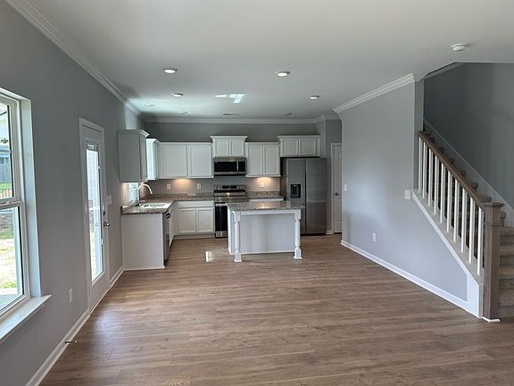 Plan(1726 Elevation DEF) All Photos are file photos of a completed 1726 plan, not actual home. Three bedrooms on the second level with large open living space on the main level. Covered rear porch, stacked stone gas fireplace, all stainless steel appliances in the kitchen.