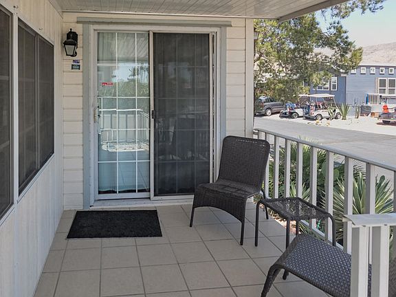Charming well-maintained Skyline Park Model with great views, located on a quiet cul-de-sac featuring 1 bedroom 1 bath, laundry room set-up in shed. Large California room has been dry walled and textured and new flooring. Throughout you will find nice, modern touches, granite countertops with a floating island, dishwasher, garbage disposal, lots of storage, window screen coverings and all furnishings inside and outside stay. Step out back to a very private and serene area for relaxing and entertaining. Located in the luxurious 55+ Caliente Springs Resort which offers amenities that include mineral hot spring pool and spas, state of the art fitness center, 9-hole golf course, 12 pickleball courts, tennis courts, laundry facilities, library, and fun organized community events. Come make this your new home or getaway place and enjoy this amazing community. Space rent is $735, lot is not owned.
