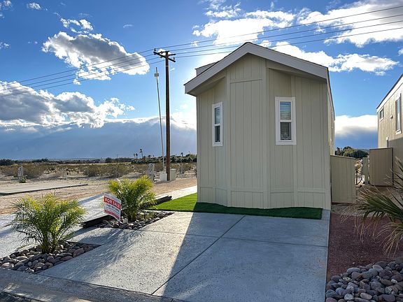 This Classic Casita getaway #449 is a brand new home that overlooks Mt. San Jacinto and Mt. Gorgonio. You'll get a first-row seat to each sunset! This getaway features a U-shaped kitchen with upgraded stainless steel appliances, white cabinets, a large bathroom and wood-mimicking flooring. This home has a poured driveway and front landscaping and it's MOVE IN READY! Home Features: -One Bed, One Bath -Upgraded stainless steel appliances -Mountain views -U-shaped kitchen -Large Living Room windows Want to take a tour or buy this home? Let us know! Enjoy being part of a community that focuses on health and makes having fun a priority!
