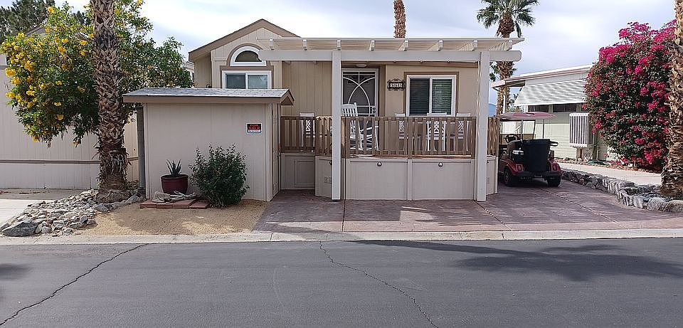 NO ESCROW, JUST PARK APPROVAL AND MOVE IN! 1997 Fleetwood with large Californa room. If set up as a typical park model this 1 bedroom 1 bath can be turned into a 2 bedroom 1 bath. Recently redone! NEW DOUBLE PANE WINDOWS, NEW KITCHEN, NEW FLOORING, NEW A/C. Newly painted. Partially enclosed back patio with awesome views of the luscious green golf course. MT. San Jacinto and ponds filled with fish, ducks and an occasional Egret. Resort living for a full timer or a winter vacationer. Many activities to partake in. 4 mineral spas and a large swimming pool with waterball daily. Pickleball, GOLF, and tennis. Come take a look! All photos taken November 12. 2021. 760 969 8825 (Phil)