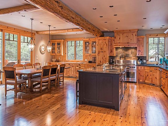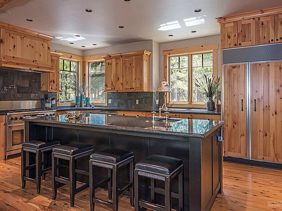 Immaculate western craftsman with all the extras. Master on the main with access to the spa on Hardwood deck, second master suite upstairs and a third on-suite bedroom, with twins, upstairs. A 4th bedroom on lower level in addition to second living space with wet bar, TV and pool, table included. Dining area and kitchen made for entertaining with large table for 8 plus 4 at the granite island counter which matches the rest of kitchen counters. Updated appliances including 6 burner propane cooktop, double oven, warming drawer, ice maker new microwave plus side-by-side frig and freezer, paneled to match kitchen cabinets. All kept warm or cool with two furnaces and two heat pumps. Two wood burning fireplaces. The virtual tour almost does this home justice,. See to encounter the feel of the real Black Butte Ranch experience.