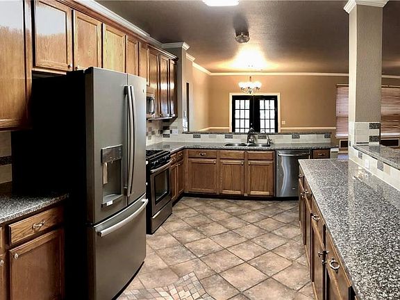 - Breakfast Bar, Crown Molding, French Doors, Granite Counters, High Ceilings, In-Law Floorplan, Multiple Dining Areas, Primary Bedroom on Main, Walk-In Closet(s), Wired for Sound