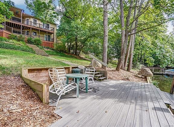Charming 4 BR waterfront home nestled on a picturesque cove just off the main channel, ideal for swimming, fishing, & water sports. The gently sloping yard or one of the covered low maintenance composite decks are perfect for outdoor entertaining or just to relax and take in the views. Recently rebuilt covered dock offers a boat lift and seating area. You???ll love the bright and open dining area & great room featuring stone fireplace, built-ins, and lake views. Kitchen features stainless steel appliances and breakfast area for morning coffee. Spacious main level master overlooks the lake with access to the deck. Lower level boasts 3 additional bedrooms, workshop (could be finished to make bed #5), and family room with wet bar. Enjoy the recreational lifestyle of Tega Cay, with golf, tennis, swimming pool, parks, and trail system all nearby. Fort Mill schools, Low SC taxes. Convenient location to shopping, dinning, and I-77.