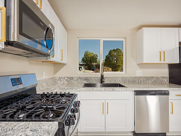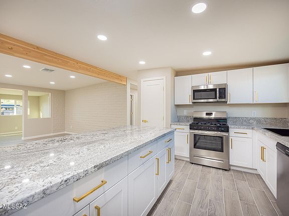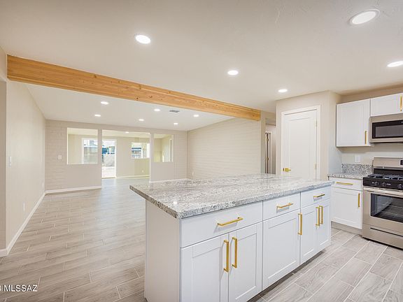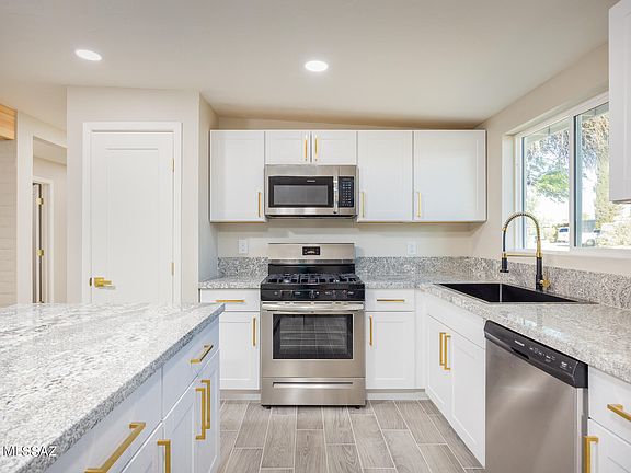 Beautiful 4 bedrooms with 2 full baths, with a den or multi use space to offer comfort and convenience for the modern lifestyle. Amazingly remodeled, located in quiet Tucson neighborhood. This home features an open floor plan, recessed lighting, new dual pane windows and new neutral paint throughout. Large kitchen with high end granite counter tops, classic Shaker cabinets with brushed gold color stylish pulls and a huge island with breakfast bar. Top of the line Stainless Steel Appliances. 2 bathrooms with designer tile that shows elegance. Large master suite with walk-in closet. All bedrooms have modern ceiling fans. Large laundry room inside. New Roof, New HVAC, New windows, New doors. Large storage shed. Huge back yard to enjoy w/ family & friends