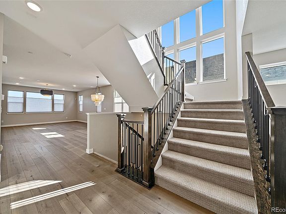 Best Value in Castle Pines Village… This beautiful 2-Story, 3 Bed, 3 Bath is better than new, and is move in ready. It is filled with tons of natural light, with modern features and amenities, but it does back to Happy Canyon, and priced accordingly. Upon entering you are immediately drawn in by the welcoming foyer and hardwood floors throughout the main level. The gourmet kitchen is a cook’s dream with upgraded Bosch appliances, overhead accent lighting, custom cabinets, a large center island, granite and quartz counter tops, and access to a covered deck which is perfect for the grill and entertaining. Upstairs you will find an oversized loft, tall ceilings, a convenient laundry room and 2 secondary bedrooms that share a jack n jill bath. Also upstairs, is the oversized private primary suite which includes a full custom bath with dual vanities, custom tile, quartz counters, an amazing shower and two large walk-in closets. The unfinished walkout basement is plumbed for a full bath, ample storage and is ready for your custom design. The Village at Castle Pines is truly a unique gated resort community, and this smart home is the perfect lock n leave property. There are miles of trails, 3 pools, a fitness center, two award winning golf courses, USTA tennis courts and of course pickleball courts. There is plenty of shopping and restaurants nearby, and within minutes to Park Meadows Mall, DTC, and Downtown Castle Rock. This is luxury living at it’s best, come visit. Ready for a quick close and move in ready.