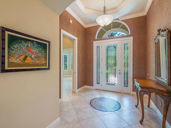 ONE OF THE NICEST HOMES IN LENNOX GARDENS! MOVE IN CONDITION! TOTALLY UPDATED AND WITH A BEAUTIFUL LAKE VIEW! UPGRADES INCLUDE PAVER DRIVEWAY, ENTRANCE WALKWAY AND POOL/SPA AREA. BEAUTIFUL CUSTOM LEADED GLASS FRONT DOOR. FOYER ACCENTED WITH MOSAIC TILE. DIAGONAL TILE THROUGHOUT ALL OF HOME. FABULOUS KITCHEN: SOLID WOOD CUSTOM CABINETS WITH ROPE DETAIL, WINE RACK, STAINLESS APPLIANCES, ABSOLUTELY BEAUTIFUL STONE COUNTERTOPS IN THE KITCHEN, BATHROOMS, DEN AND DINING ROOM! OWNER'S RETREAT WITH TRAY ACCENTS, LARGE WALK IN CLOSET WITH BUILTINS, MASTER BATHROOM WITH CUSTOM BOWLS, UPGRADED PLUMBING FIXTURES, GLASS BLOCK WALK-IN SHOWER, FLOOR TO CEILING TILE! UPGRADED CEILING LIGHTING THROUGHTOUT. BERMUDA SHUTTERS, TOO! LARGE LANAI WITH BEAUTIFUL PAVEL DECK, POOL AND A FANTASTIC WATER VIEW! FURNITURE AVAILABLE ON SEPARATE BILL OF SALE.