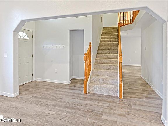 Beautiful spacious home with so much to offer! New flooring & interior paint completed September 2022! Large kitchen with 2 ovens & 2 side by side walk in pantries. Home has recessed lighting, cathedral ceilings, family room, living room, dining room & 2 offices w/ built in desks/cabinets. Upper level has 5 bedrooms & Laundry room! Close to Knik Arm!