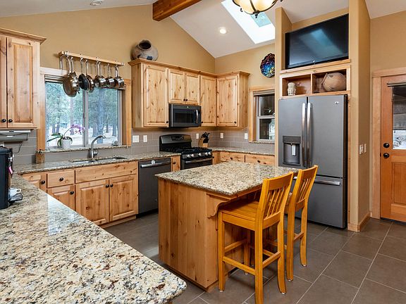 Stunning Sisters home with high end finishes, located on private 2.5 acres. Everything in this home is move-in ready, from bamboo floors & granite counter tops, to warm wood ceilings. As you enter, you will find a floor-to-ceiling stone see-through fireplace. Yes, really. Detached shop, huge storage shed & asphalt driveway. Bring your hobby or start a band in the dream shop with office & separate full bath. Relax outside with your covered patio area just off the kitchen. The recently stained back deck has been expanded & includes hot tub. This breathtaking home is a must see!