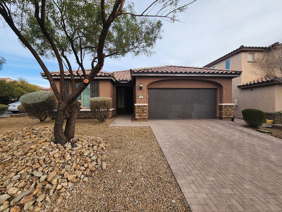 Welcome to the Lovely Single Story Home in Mountains Edge, a gem nestled in the vibrant city of Las Vegas, NV. This home boasts 3 generously sized bedrooms plus a Den/Office and two full bathrooms, offering ample space for comfort and relaxation. The open and airy floor plan, complemented by shutters/blinds, allows for an abundance of natural light, creating a warm and inviting atmosphere. The large primary suite is a haven of tranquility, perfect for unwinding after a long day. The kitchen, equipped with stainless steel appliances and stone countertops, is a chef's dream. The covered patio and spacious backyard provide an ideal setting for outdoor entertaining or simply enjoying the Nevada sunshine. Golf enthusiasts will appreciate the private putting green, while the two-car garage, complete with an EV charger, caters to modern, eco-friendly living. Additional features include a water softener system, ensuring the highest quality water throughout the home. Experience the perfect blend of comfort, convenience, and luxury in this stunning Las Vegas home.