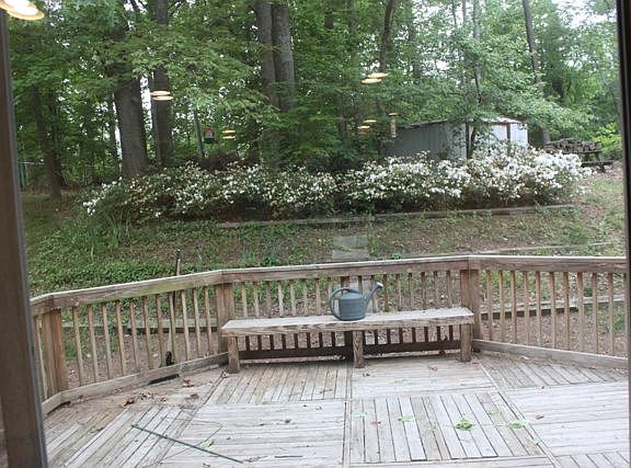 Wooded lotEat-in kitchenFamily room with fireplaceLarge wood deck