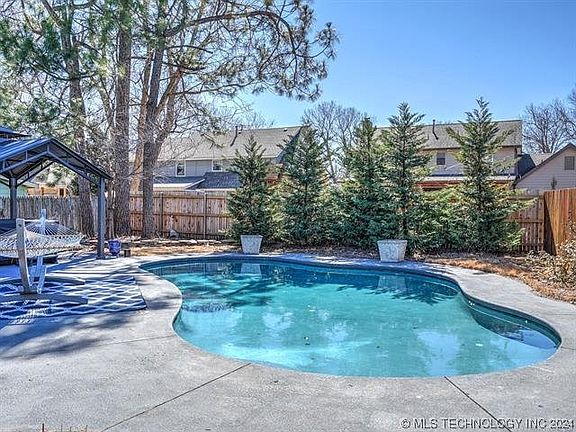 ADORABLE Updated Home in JENKS SCHOOLS with NEW ROOF & GORGEOUS freshly plastered gunite pool! Wonderfully appointed residence offers spacious plan, 2 or 3 livings spaces, oversized bedrooms, loads of storage & closets plus well-appointed kitchen. With fresh paint throughout, this home offers plenty of natural light & a terrific use of space! Stepping inside the entry hall,a very large living or dining space greets you with easy kitchen access - gathering with family & friends will be possible in this oversized dining space - be formal as you wish! The vaulted great room boasts the center of the home offering a large stone woodburning fireplace & picture-perfect views of the stunning pool & back yard spaces. Step outside to the huge covered patio for outdoor grilling & fun in the sun! The kitchen has fresh cabinet details including new paint, brushed gold hardware, beautiful granite counter tops & a very large breakfast nook, snack island & updated stainless appliances, new faucets & fixtures. Beyond the kitchen is a wonderfully finished bonus space-this has SO many possibilities offering gorgeous views of the pool! A possibility for the primary suite with fireplace feature, access to the patio, and a private full bath - OR perfect teen hangout & favorite place to host family movie night. Three large bedrooms are found down the hall opposite the vaulted family room offering flexible options for use. A large full bath is shared by the two guest suites. The laundery is tucked away to hide the mess across the hall from the bedrooms. The primary suite is secluded with an updated spa bath, new granite tops and glass enclosed shower. Also convenient access to the back yard spaces for an evening dip in the beautiful pool. The large covered patio is the perfect place to host your BBQ's and the covered arbor is all set for your favorite read or deck of cards. This backyard sanctuary is the STAR-summer swim parties, sunshine & friendly gatherings await - HURRY HOME!