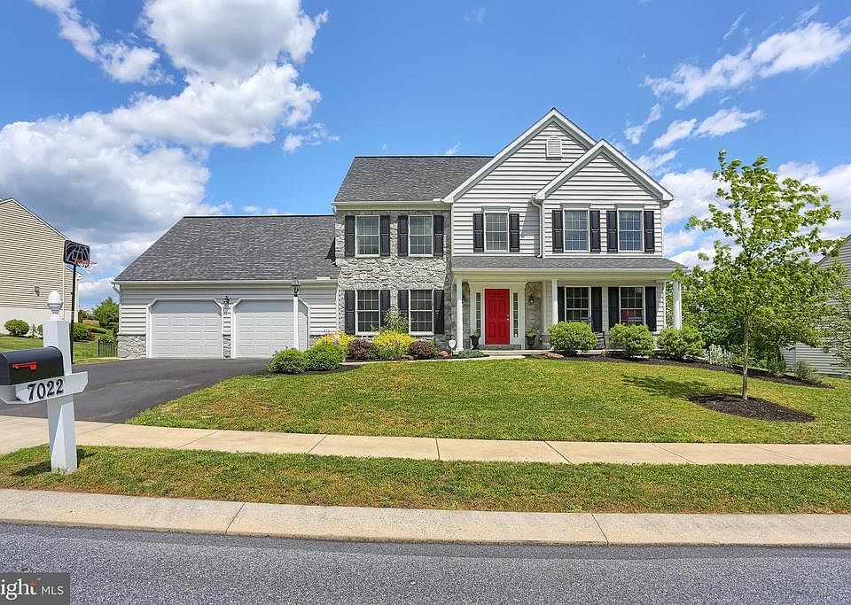 Don't miss this great opportunity to own a beautiful well-maintained home in the desirable Kendale Oaks community. This one-owner home sits perfectly on half an acre of one of the community's premier lots and is accented with manicured flower beds. The covered front porch, perfect for rocking chairs, welcomes you into the open foyer with hardwood floors. The formal dining room features crown and chair rail molding. The living room is open to the family room with gas fireplace including a heatilator to instantly add warmth to your home. The eat-in kitchen with custom Cherry cabinets, center island and built-in desk provides ample storage. Conveniently located off the kitchen is the laundry room/mud room that was especially designed for the owners with a custom coat rack and bench seat to provide an ideal drop zone when entering from the garage as well as a walk-in pantry that offers coveted storage space. A French door in the kitchen leads to a large maintenance-free composite deck offering expansive views of the Blue Mountains. Stairs leading to the fenced-in level backyard are gated keeping kids and pets safe, and the fence is built to code for a future swimming pool! Beyond the fence, the backyard continues with a perfect area for gardening or the addition of more greenery. The over-sized Jeld-Wen windows on the first floor allow abundant natural light into the home. The second floor offers an owner's suite with vaulted ceilings and a master bath with custom cabinetry, walk-in shower and separate soaking tub. Also included is a large walk-in closet and an additional unfinished storage area. Completing the second floor are three additional bedrooms, two with oversized walk-in closets, and a hall bath with a large double-sink vanity. A full unfinished walk-out basement with Superior foundation walls provides a blank slate for customizing additional living space. French doors lead to the newly-installed paver patio underneath the deck and patio walkway providing an area to relax and play in the shade. New carpeting installed throughout the first floor in 2014 makes this home move-in ready. Conveniently located to Hershey Medical Center, Hershey amenities, HIA, shopping and major routes.