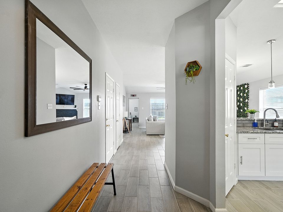 Enjoy the beautiful Texas weather in your private, fenced backyard. The covered patio is perfect for morning coffee or evening relaxation.