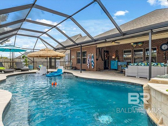 Gold Fortified! 4 Bedroom 2 1/2 Bath. Centrally Located! Beautiful Finishes! Gated Community! Amazing Fully Screened Heated and Cooled Salt Water In Ground Pool & Hot Tub with a sun shelf and travertine decking! Too many upgrades to name! and all just minutes from the beach, the Foley Beach Express and Hwy 59. The Stonegate Estates community also offers Tennis Courts, a Club House and a Community Pool and is inside the Gulf Shores City Schools. This spacious open plan (Victoria/G) features many new 2024 upgrades including lighting fixtures throughout, fresh paint, marble and granite counter tops in the kitchen with a new backsplash, granite sink, and under counter lighting. The Master Bath has been upgraded with a newly extended and tiled walk in shower, garden tub, and new granite counter tops. Did I mention the spacious oversized walk-in master closet with double hanging racks, providing you even more space.This home also features vinyl flooring, SS appliances, upgraded cabinets, a large covered front and extended rear porch with sun shades for relaxing, a 2-car garage with elevated storage racks, fabric storm shield for the exterior windows, Vivint Alarm System, Irrigation System, 2" Mini Blinds, Bug Mister on lanai and back yard, back yard lighting, transfer switch for generator, floored attic space, outdoor shower with hot and cold water. Refrigerator, new 2024 Washer/Dryer and all kitchen appliances included. Call today to schedule your showing!All information provided is deemed reliable but not guaranteed. Buyer or buyer’s agent to verify all information. Buyer to verify all information during due diligence.