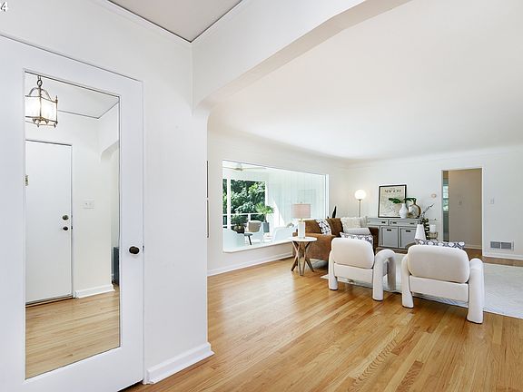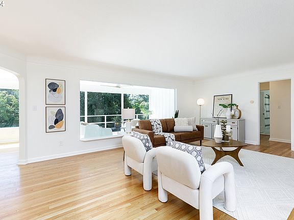 Light-filled Washington County home takes us back to the glamour of the old Hollywood era in so many ways. Rich wood floors, window walls, masonry fireplaces, curved doorways, and a wet bar wrapped in Naugahyde, a formal dining room and 2 large living spaces, all from the early home design. This home provides main floor living at its best. The primary bedroom and one other on the main, with the benefit of a lower level with bedrooms, bath, and media/family room all recently finished. The main floor living areas open to covered outside living space viewed from a large window for a very light and open feel. The grounds are .61 acre and there is room for you to add a sports court, (perhaps pickle ball?),a pool, or maybe a guest cottage if you like (and the city approves). A large greenhouse is in need of repair but offers amazing gardening opportunities or, make another outside entertainment area. Large, 4-car garage. The ideas are endless, the home is timeless, elegant and available. This home is shown by appointment, please call today for a private tour.