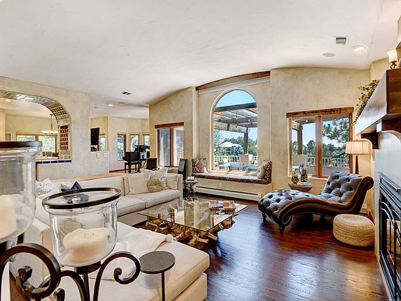This stunning Mountain Mediterranean ranch-style home sets on the #6 Sleeping Indian tee box of the West Woods golf course is available for luxury leasing, the home is fully furnished, and offered with flexibility in lease terms. With an interior design and architecture that combines elements of the traditional Mediterranean aesthetic with the rugged and rustic features of mountain environments. It is characterized by natural materials, such as stone, wood, and metal, that create a warm and cozy atmosphere. The color palette is inspired by the earthy tones of the landscape, such as beige, brown, green, and blue. The furniture and accessories are handcrafted and selected specifically to fit the design of the home. Enjoy Colorado's 300 days of sunshine on one of five outdoor patios or decks. Featuring a wood-burning firepit and adjacent hot tub. Or dine on the upper deck with the live edge fire table seating for 8. The front courtyard offers a wraparound area with privacy for dining and relaxing. A separate grilling deck provides the chef in the home a full-size Viking professional gas grill with an additional two burners. The generously oversized three-car attached garage has abundant storage / flex space. On the main level, you'll find a spacious great room with sweeping views of the Denver skyline against the green of the golf course. In addition, there is a formal dining room, separate office (with exterior entrance), butler's pantry, kitchen with an eat-in island, gas fireplace, grand piano and nook eating area. The appeal of a ranch style home is the primary retreat is found on the main level. This room features a gas fireplace, full 5-piece ensuite bathroom (+ steam shower) and spacious walk-in closet. The bedroom opens onto the deck overlooking the golf course. The walkout level features 3-bedrooms, 2-bathrooms, and a second great room with dining area, large screen TV / sectional and kitchenette. Each bedroom has a full walk-in closet and large sleeping area. Comfort and elegance are integrated throughout this Mountain Mediterranean home located in the West Woods Golf Club community. The golf course features 27 unique championship golf holes. Each of our three nines provides brilliant natural scenery along with challenges for golfers of all skill levels. West Woods is a premier neighborhood nestled in the heart of Arvada, Colorado offering a delightful blend of small-town charm and unparalleled access to urban convenience and Colorado's natural beauty. This serene enclave is characterized by the unparalleled views of North Table Mountain, the Front Range, and Colorado's famous sunsets, providing a peaceful ambiance that compliments the neighborhood's wide-open spaces. A stunning backdrop of both sunrise over Denver and the sun setting on the Rocky Mountains ensures residents are always witness to nature's beauty. Living in West Woods means having local vistas that include the Boulder Flatirons and downtown Denver. Visit the link below for more pictures and full video tour. https western-exposures-photography.aryeo.