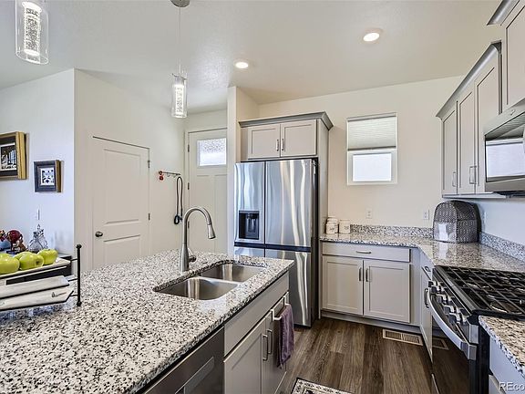 ASSUMABLE LOAN (requires qualification per lender)!!! 4.99% INTEREST RATE!!! This Fabulous Home Looks & Feels Like A Model Home At A Terrific Price!!! Move right in to this beautifully maintained, turn-key end-unit townhome—offering the perfect blend of style, comfort, and convenience. From top to bottom, this home shines with natural light, and a spacious, thoughtfully designed floor plan. The main level features an open-concept layout ideal for both entertaining, and everyday living. Enjoy a stylish powder room and a modern kitchen equipped with an island, double sink, ample cabinetry, and expansive counter space. Upstairs, you’ll find a versatile loft area, three generous bedrooms, and a conveniently located laundry room. The sophisticated primary suite boasts a beautifully upgraded shower enhanced with Jacuzzi Silver Shield Technology—offering antimicrobial protection, exceptional durability, and lasting beauty that resists cracking and fading. Additional highlights include: * High-End Appliances Including Refrigerator, Washer, Dryer, Microwave Gas Range/Oven * Energy-Efficient Tankless Water Heater * Oversized Attached 2-Car Garage With Exceptional Storage Space * Abundant Guest Parking Nearby. Perfectly situated near the community courtyard, this exquisite home offers peace, privacy, and a prime location close to shopping, a brand-new grocery store, gas station, and quick access to Hwy 52 and I-25. This One Checks Every Box! Schedule your private showing today!