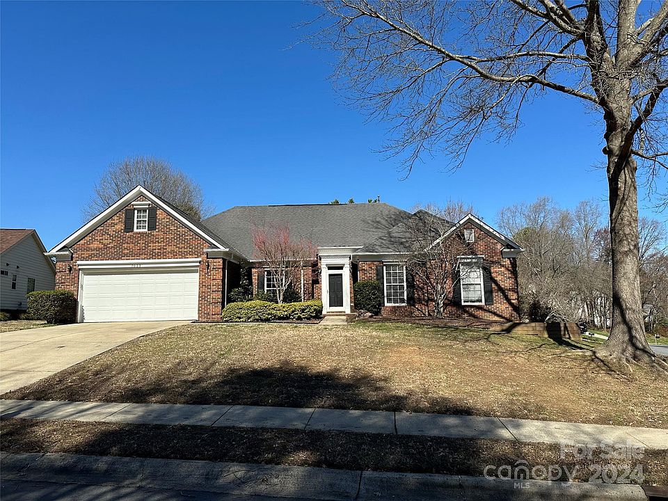 Charming ranch home offers comfort and luxury, nestled on a corner lot with a pond view. Features include a cozy living room with a fireplace, an 800 sq/ft deck, and a private, fenced backyard. The open-floor kitchen and living area, with high vaulted ceilings and granite countertops, are perfect for gatherings. The master suite includes a tub, steam shower, office space (convertible to a 4th bedroom), and a walk-in closet. The home is conveniently located near amenities and transportation, 15 minutes from uptown Charlotte and 30 minutes from Lake Norman. Community amenities include an Olympic-sized pool, tennis courts, a volleyball court, a playground, and a fishing pond. Additional benefits include a sprinkler system, free city bulk trash pickup, and neighborhood sidewalks. This property combines peaceful living with easy access to urban conveniences.