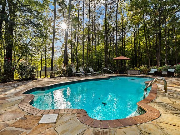 Secluded setting with spectacular views - 153' of waterfront property on a dual parcel 6.4 acre lot, this is an ideal lakeside retreat. Step inside and take in the quality construction of this custom built home. To the left of the entry, you'll find a stately dining room w/ built-in cabinetry, a china closet & high ceilings. Or step straight into the large great room w/floor-to-ceiling stone fireplace, high ceilings and large windows to take in beautiful views of the pool and lake. To the left, enter a large gourmet kitchen updated with rich wood cabinetry and granite counters boasting the best in appliances: Wolf cooktop, wall-oven and warming drawer, JennAir refrigerator, dishwasher & Whirlpool ice maker. Casual dining area has wetbar and wine rack. Multiple bedrooms have large windows with views of the lake. Master bath has large walk-in shower, a bidet, and custom cabinetry for plenty of storage. Greatroom has fireplace w/propane gas starter. Outside the stunning natural surroundings are enhanced by the flatstone patio around the saltwater pool and inground hottub. Separate from house, find a 38x40 workshop/garage metal building with 2 rollup garage door openings. Electricity and water with lots of extra paved pad. Privacy abounds in this serene setting. The acreage borders both Cartledge Rd and Chantileer Trl. Come see what your new lifestyle can be.
