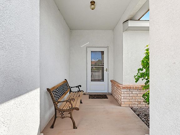 Step inside this updated home featuring spacious rooms and thoughtful upgrades throughout. Recent improvements include tile flooring, a stylish new kitchen backsplash, updated appliances, modern lighting, faucets, and door hardware with keypad entry. The garage offers built-in storage, while a side yard gate provides vehicle access to the generous backyard. Enjoy landscaped front and back yards, plus views of the Sandias and no adjacent neighbors behind. Conveniently located near main roads, shopping, dining, and recreation.
