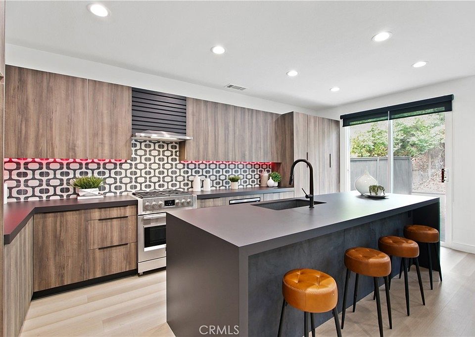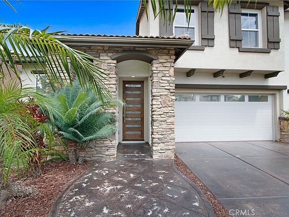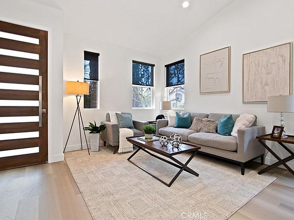Introducing this captivating home nestled in a tranquil cul-de-sac within the prestigious Serrano Heights Community of Orange. With 4 bedrooms and 2.75 baths, this exquisite residence offers a turnkey experience. Enter through the elegant 8 ft. custom wood and glass paneled door into a formal sitting entry and dining room. The open kitchen-living space features a sleek black porcelain countertop with an onyx sink, a Fulgor Milano range, and a Zephyr hood. Highlighting the family room is a tumbled blue glass fireplace, complemented by the remarkable iridescent glass penny pool-tiled shower on the main level. Ideal for guests or multi-generational living, a downstairs bedroom and private bathroom provide convenience and comfort. Upstairs, the primary bedroom boasts serene tropical views, an en-suite "smart" bathroom, and a customized walk-in closet. The versatile loft offers possibilities as a home office, gym, or a 5th bedroom suite for guests. The property is completed by a stamped concrete patio, palm trees, and a lush grassy yard. Benefiting from its proximity to award winning California distinguished schools, parks, and trails, this home invites you to embrace a vibrant community. Seize the opportunity to be a part of this exceptional lifestyle - schedule a tour today!