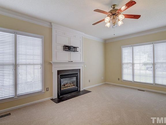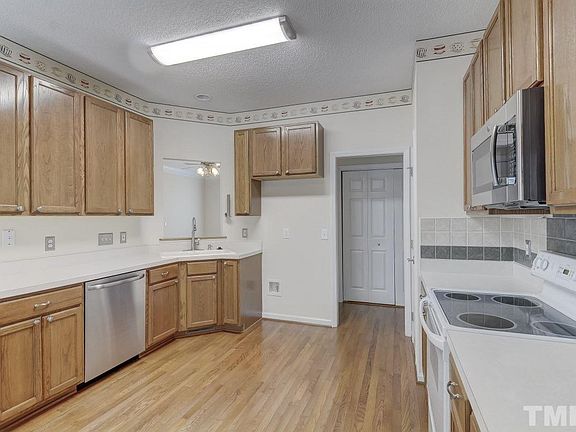 Move in ready traditional home in highly desirable NW Raleigh neighborhood. New roof 2018. New water heater 2017. Large family room features new carpet & gas log fireplace. Formal dining includes wainscoting & hardwoods. Bright & open eat-in kitchen offers hardwoods & stainless steel appliances. Master suite has trey ceiling, soaking tub w/ separate shower & walk in closet w/ custom shelving. Huge 4th bedroom/bonus room. Oversized 2 car garage. Flat, fenced backyard w/ wooded buffer. Pool community.
