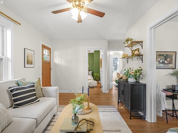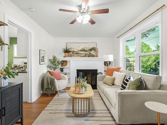 Fall in love with this beautifully updated bungalow in the sought-after St. Johns neighborhood! Featuring charming landscaping and wood floors throughout, this home exudes warmth and character. The bright and sunny living room, complete with a wood-burning fireplace, provides a cozy retreat. The kitchen, with a dining area, has stainless steel gas appliances and quartz countertops, perfect for both everyday living and entertaining. This house offers two inviting bedrooms and a full bath with a tub/shower combination on the main level. The finished basement is a standout feature, offering a spacious bedroom with a private bathroom and a large walk-in closet, ideal for guests or a primary suite/ possible airbnb with exterior entrance. The expansive fenced backyard is larger than most in the neighborhood with shade trees, a detached 11x9 shed, and access to a covered patio from the dining area, perfect for outdoor dining and relaxation. The side yard includes raised garden beds for those with a green thumb. Located in a fantastic area, this home is close to shops, restaurants, the historic St. Johns Bridge, Cathedral Park on the Willamette River, and offers an easy commute to Downtown. With a fantastic bike score of 87, this is a dream home for biking enthusiasts. Don't miss the opportunity to make this charming bungalow your own! [Home Energy Score = 6. HES Report at https://rpt.greenbuildingregistry.com/hes/OR10033562]