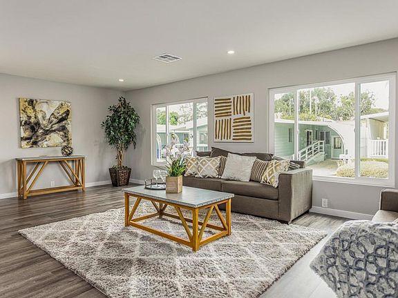 Comfortable, modern, affordable. Live near miles of sandy beaches, shopping across the street, Costco and The Outlets a mile away. This updated larger home in Lakeshore Gardens is welcoming you to the good life in North County San Diego. Imagine the places you will go - the people who will visit you - the tan you will have all year long! This comfortable home provides a base for relaxing, playing, travel, and fun. 2 bedrooms and 2 full baths. Our 383 homes on 53 acres with 10 lakes provides many daily activities to enjoy or enjoy the peace and quiet in your own recently updated home. There are NO HOA fees and NO Real Estate taxes. The land lease is only $2,200 per month. Come and take a look!