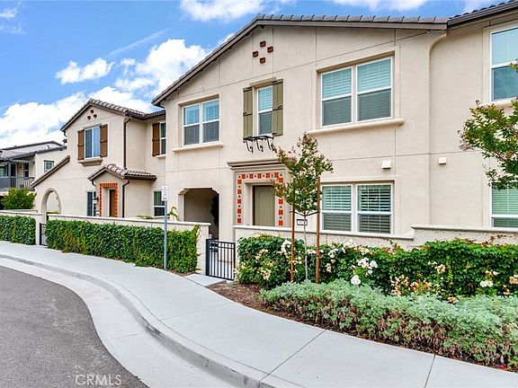 Nice Open Spacious 2 bedroom 2.5 Bath condo located in the highly desirable area of Eastvale; gated community of Prado. Beautiful water proof flooring throughout, and upgraded shutters throughout. Nice open spacious living room, open to kitchen and dining area. Kitchen features granite counters, white cabinets; and a spacious kitchen island. Refrigerator included. Upgraded exquisite chandeliers. Coat closet downstairs, and an additional closet that has a lot of room to turn into a walk in pantry if desired. Home features a private patio, and a covered porch off the dining room. Two car, direct access garage with upgraded epoxy floors and Tessla charger already installed. Laundry room includes washer/dryer, and has additional cabinet space. Primary bedroom features dual sinks, separate tub/shower, walk in closest. Community features gated community, and security, playground, swimming pool, barbecues, greenbelts, etc. Close to shopping/restaurants. Check out the highly desired school district.