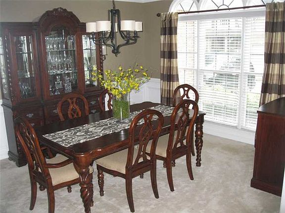 Updated keeping rm, kit w/granite counters, ss appliances, UC lighting, tile backsplash, cherry cabinets, huge island, HW floors open to 2 story grand rm w/wall of windows and FP. Master on main w/2 walk-in closets, master ba w/granite vanities, tile floors and shower, garden tub, office on main. 3BR up w/walk-in closets w/private bath, 2 w/jack&jill bath. Completely fenced level private back yard backs up to trees. Golf views from front of house, quiet culdesac, swim, tennis, golf, clubhouse, workout facility, playgrounds, close to shopping and hospital. Great schools!