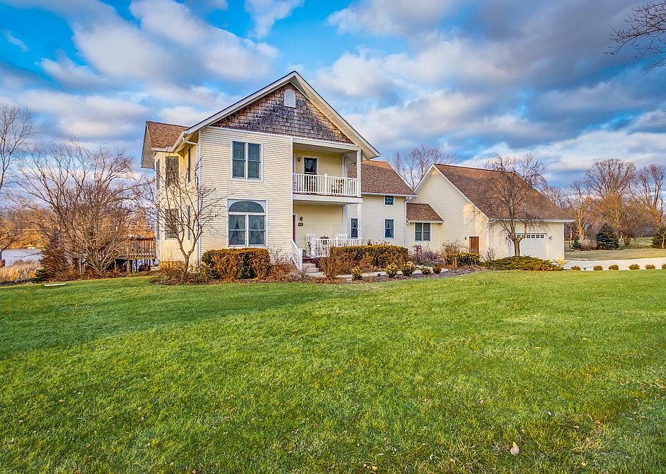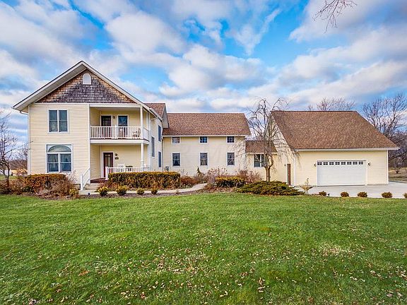 ONE OF A KIND! This exceptional custom home boasts historical charm with modern conveniences;country living close to the city; a perfect blend of both worlds! Experience the character-from the 2 front porches; hard wood floors;abundant windows;wide baseboards;st. glass/leaded windows,3 rear decks;new 30'x34'-4 level carriage house/garage with shed and safe room;25'x11'rec vehicle parking pad,& new mudroom to the 2 recently remodeled upstairs baths;owner's retreat with kitchenette,updated fixtures,doors,new concrete drive, new appliances;loft and great room adorned with barn beams;walk out LL,new heat pump 2017, located on a shared stocked pond (fishing is great!)in a park like setting, on nearly 1.5 acres. Listed $40K below appraisal! Easy access for commuting,located just miles from SR 33