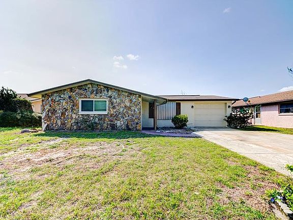 Adorable 2 bedroom 1 bath home centrally located in Port Richey. Kitchen has a breakfast bar, updated lighting, and newer appliances. This home features quite a few updates; laminate flooring, new windows in the master, new carpet in both bedrooms, A/C 2005, Roof 2002, and hurricane shutters. Plenty of closet space, both bedrooms feature walk in closets, additional coat closet, and large linen closet in the hall. Enjoy Florida living on your screen enclosed patio overlooking your fenced back yard. Two sheds in back yard for extra storage. Avocado and fig tree in back yard as well!