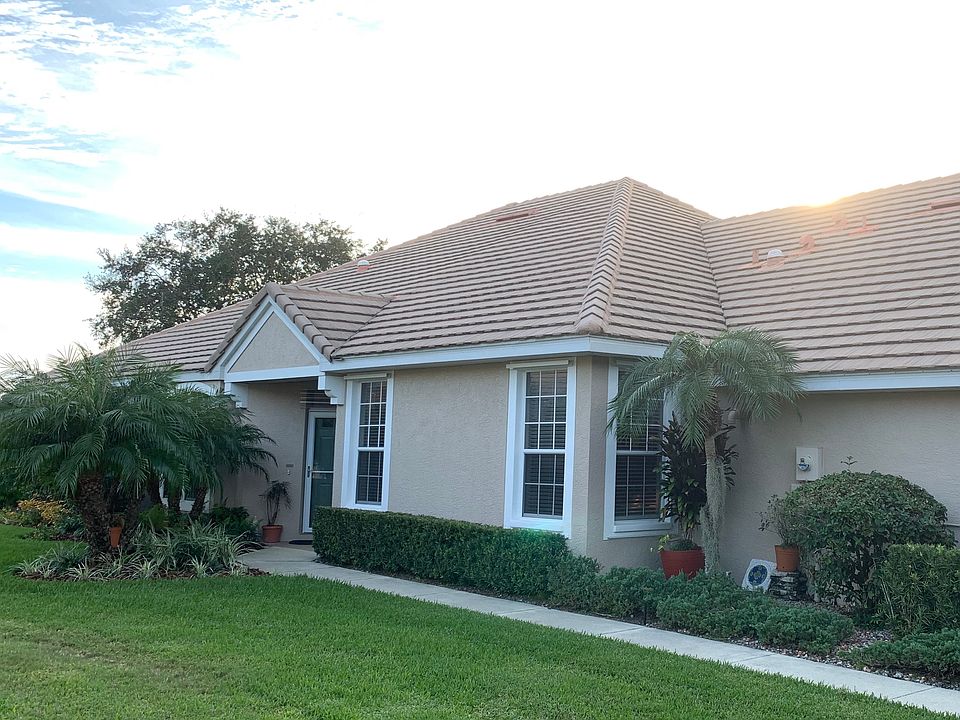 AMAZING OPPORTUNITY to own a highly sought after yet rarely available Weston Villa in the heart of Lakewood Ranch Country Club. Immediately upon entering you will notice just how meticulously clean, bright, open, and move in ready this home is. Impress your guests as you prepare gourmet meals in the large kitchen with newly remodeled granite countertops offering an abundance of space, all wood lighted cabinets, brand-new stainless steel appliances, breakfast bar, and lovely eat-in dining area. Afterwards, relax in one of two nicely sized bedrooms with the option of accommodating even more guests or family members by using the spacious office/den adorned with wood floors, french doors and built in closets as a 3rd bedroom. The Master suite features tray ceilings with crown molding, built in closet and a private bath complete with dual sinks and recently remodeled shower. Nothing is more peaceful than enjoying your morning coffee or evening glass of wine as you sit in the newly expanded screened lanai which affords privacy from your neighbors and the most serene lake and natural preserve views. Weston also offers its residents the additional ability to enjoy the nearby heated community pool, spa and gathering areas! The two car garage has extra storage space, a utility sink and plenty of room for your car as well as the INCLUDED GOLF CART! This will not last long as it is conveniently located near the Legacy Golf Course, Lakewood Ranch Golf and Country Club, and UTC Mall.