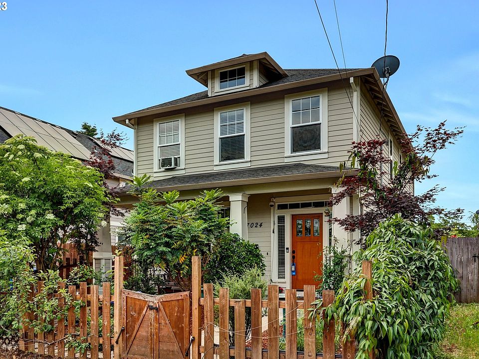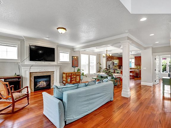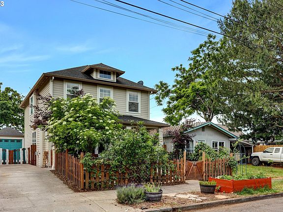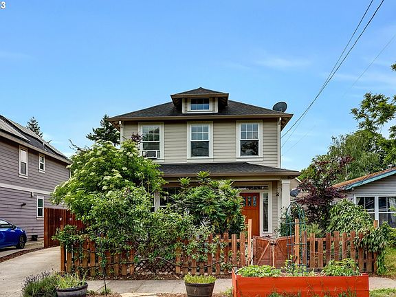 WOW! Priced right to be someone's dream home! Great quality Portland Foursquare. Open layout with high ceilings & crown moldings. Extensive high-end mill-works throughout. Tiger wood floors on main floor. Hardwood floors lead into the great room natural daylight. Cozy up to your gas fireplace flanked by built-in book shelves. Enjoy your large kitchen perfect for entertaining with pantry, slab granite counters and large island. Formal dining with box beam ceilings and crown moldings. Kitchen opens to covered patio. Relax on the private backyard patio surrounded by the fully-fenced backyard and carefully developed native landscaping. Primary suite with soak tub, walk-in closet and shower with double sinks. 4th bedroom on main great for office space or multi-generational living. Located on quiet street, yet also nearby restaurants and shops of Foster. [Home Energy Score = 7. HES Report at https://rpt.greenbuildingregistry.com/hes/OR10217200]