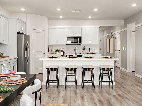 No HOA. Brand new solar home offering a single-story floor plan with 4 bedrooms, 2 bath, and a 2-car garage. Features include a spacious open-concept great room, chef's kitchen with separate cooktop and oven, farmhouse apron sink located in the island that comfortably seats 3 guests. Home is equipped with vinyl plank flooring, carpeted bedrooms with 8lb pad, quartz counter tops and shaker-style cabinets. Kitchen cabinets include 3 inch crown. Home features a Connected® Smart Home System which includes a programmable thermostat, door locks, smart light switch and touchscreen Smart Home control device when the system is connected to the internet. Please note interior photography is from the model complex.