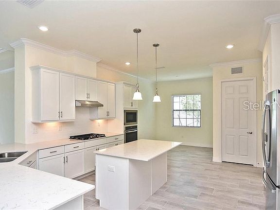 Nearly new! You're sure to be impressed with the beauty and thoughtful design of this open concept "Stanford" model home. Located on a large, maintenance provided homesite with expansive, serene lake views that can be enjoyed from the lanai, pool, spa and outdoor kitchen area or from the comfort of the living area through the triple glass sliders. You'll love this dream kitchen with gorgeous 42 inch white shaker cabinets complimenting the fabulous gleaming quartz countertops. Under-mount lighting, gas burner cooktop and GE Gallery Series stainless steel appliances make the perfect finishing touches. The spacious owner's retreat offers plenty of room to relax, plentiful closet space and a stylish en-suite bathroom. Additionally, another bedroom features the privacy and convenience of its own en-suite bathroom, which your guests will surely appreciate. The attention to detail, including sleek wood plank flooring in the main areas, exquisite stonework, and stylish finishes throughout, make this a home to truly enjoy. So many community amenities included and conveniently located near the new UTC Mall, great shopping, restaurants, theaters and convenient to world class beaches and airports!