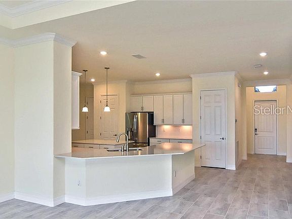 - Interior Features: High Ceiling(s), Split Bedroom, Crown Molding, Walk-In Closet(s), Open Floorplan, Solid Surface Counters, Solid Wood Cabinets, Eating Space In Kitchen, Kitchen/Family Room Combo, Thermostat
