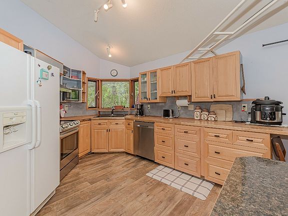 Welcome to your spacious retreat in Grindrod, nestled on a sprawling 0.79-acre lot adjacent to the Birchdale Golf Course. This expansive property offers abundant space both indoors and outdoors, perfect for enjoying the tranquil surroundings. The 2,535 square foot, 3-level split home features a versatile layout with 4 generously sized bedrooms and 2 full bathrooms on the upper floor, providing ample accommodation for the whole family. On the main floor, you'll find an inviting open-concept kitchen, recently remodeled to offer modern convenience and style. The adjacent sunken living room boasts a cozy electric fireplace, creating the perfect ambiance for relaxation and gatherings. Downstairs, the basement offers a huge rec room and plenty of storage areas, providing additional space for entertainment and organization. Recent updates to the home include laminate flooring, a remodeled main bathroom, and the addition of a heat pump, and central air conditioning, ensuring comfort and efficiency year-round. Outside, the large flat property offers endless possibilities for outdoor enjoyment and recreation. Whether you're gardening, playing sports, or simply relaxing in the fresh air, this expansive yard provides the perfect backdrop for your lifestyle. Don't miss out on this opportunity to own a spacious home in a desirable location with recent updates and plenty of room to grow. Schedule your viewing today and make this Grindrod gem your own!