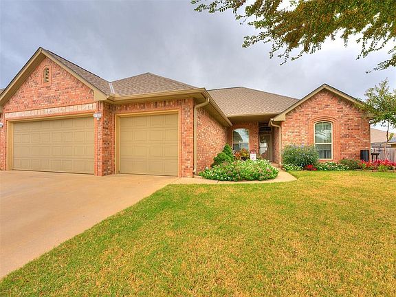 This pretty traditional-styled home is tucked away in a quiet pocket of the metro in Warr Acres. It is centrally located providing quick and easy access to NW Expressway, Kilpatrick Turnpike, and I-44. It shows off a beautifully landscaped front yard that is welcoming to you and your guests with a covered front porch with room to sit and enjoy the outdoors. The home is very open and great for entertaining or just having family time. Two dining spaces and a breakfast bar offer room for entertaining or a quiet night in with family. The formal dining space that could easily fit a 6-8 person table, allows for ample accommodations when hosting. The living room, hallway, and Owners Suite bedroom show off beautiful, engineered hardwood floors. Don't miss dual shower heads in the Owners' ensuite! The 3-car garage is a rare find in this addition. You’ll have easy access to the neighborhood pavilion that sits just at the end of the block. A park sits approximately .4 miles away and features a pavilion, tennis courts, and pickleball courts. Reserved Items include the following: Floral Draperies in Primary Bedroom, Red and Gold drapes in Living Room and Kitchen, the Stained-Glass Lamp in the Primary Bedroom and the 2 Sheds in the Back Yard.